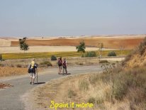 En dag utan skugga eller skydd från träden. Ibland kan det vara påfrestande sol, piskande regn, hård vind eller det mest fantastiska vår-, sommar- eller höstvädret. Man kan aldrig veta och utan träd på Mesetans flacka terräng går det inte att gömma sig undan vädret. Omkring Castrojeriz cyklar man uppför en backe med fina vyer. Blicka ut över ”Tierra de Campos” - ett ”land” med stor stolthet över sitt spannmål, storkar, duvflockar och värdefulla konstskatter.